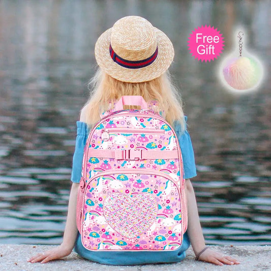 3 Piece Set School Bags for Girls | Unicorn Pink Sequins Waterproof Kids Backpack