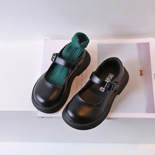 2024 New Black Girls Loafers for School Uniform| Simple Round-toe Non-slip Round-toe Shoes for Kids